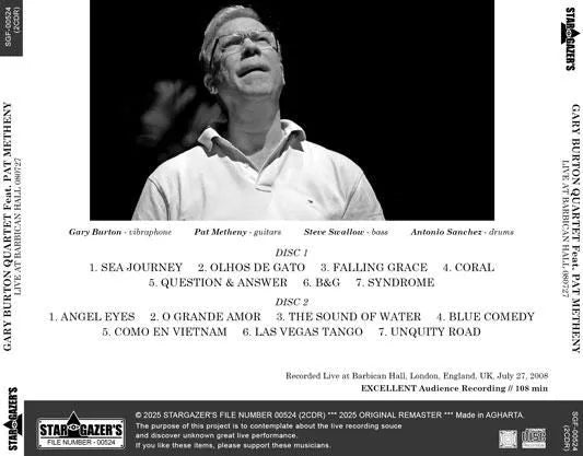 GARY BURTON QUARTET FEATURING PAT METHENY / LIVE AT BARBICAN HALL 080727 (2CDR)