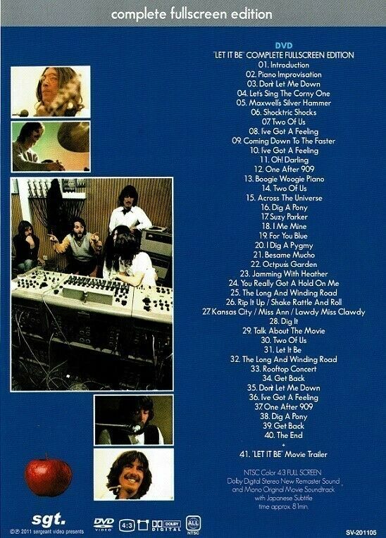The Beatles Let It Be Complete Fullscreen Edition DVD 1 Disc 41 Tracks Music F/S