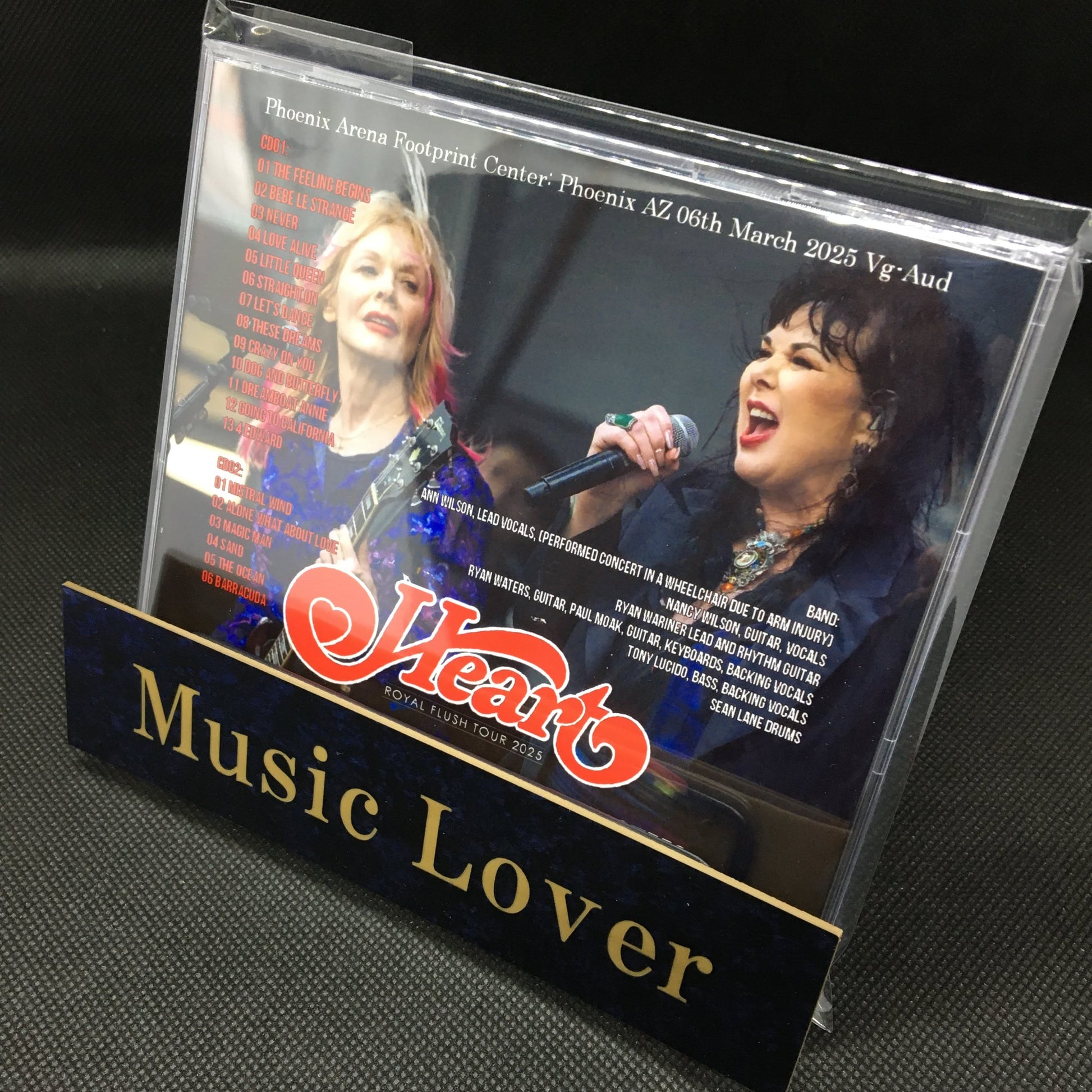 Ann Wilson, voz principal, (realizó el concierto en silla de ruedas debido a una lesión en el brazo)