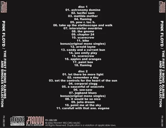 PINK FLOYD / LA PRIMERA COLECCIÓN DE 2 ÁLBUMES MONO Y SENCILLOS (2CDR)