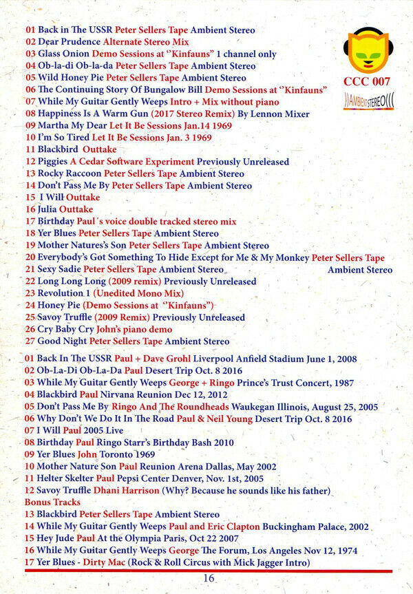 Fifty years ago in november, The Beatles released what would be their highestselling and arguably most polarizing double album to date, The Beatles aka The White Album. We commemorate this 50th anniversary with a nice collection of White Album rarities. New Mixes, Rare Tracks and Live Recordings.