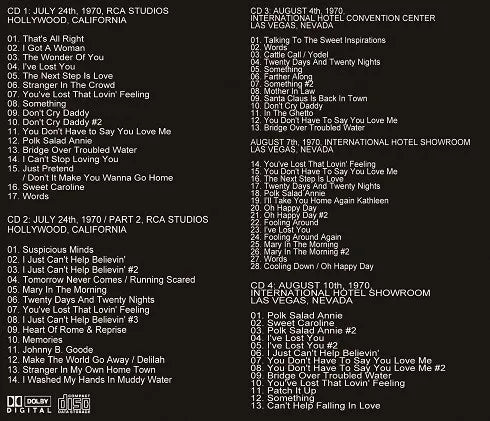 ELVIS PRESLEY / 1970 RCA & INTERNATIONAL HOTEL REHEARSALS & SHOWS (4CDR)